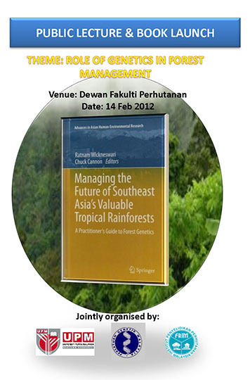 « All Events This event has passed. Options for Sustainable Management of Southeast Asia’s Valuable Tropical Rainforests 14 February 2012 @ 8:30 am - 1:00 pm « Dr. Joanne Russell (SCRI, Scotland) 2002 PGM Seminar 2012 and 17th PGM Annual General Meeting » Public Lecture and Book Launch by Dato’ Shaharuddin Mohammad Ismail (Lestari UKM) + Google Calendar+ Add to iCalendar Details Date: 14 February 2012 Time: 8:30 am - 1:00 pm Event Categories: Book Launch, PGM Public Lectures Organizer Persatuan Genetik Malaysia
